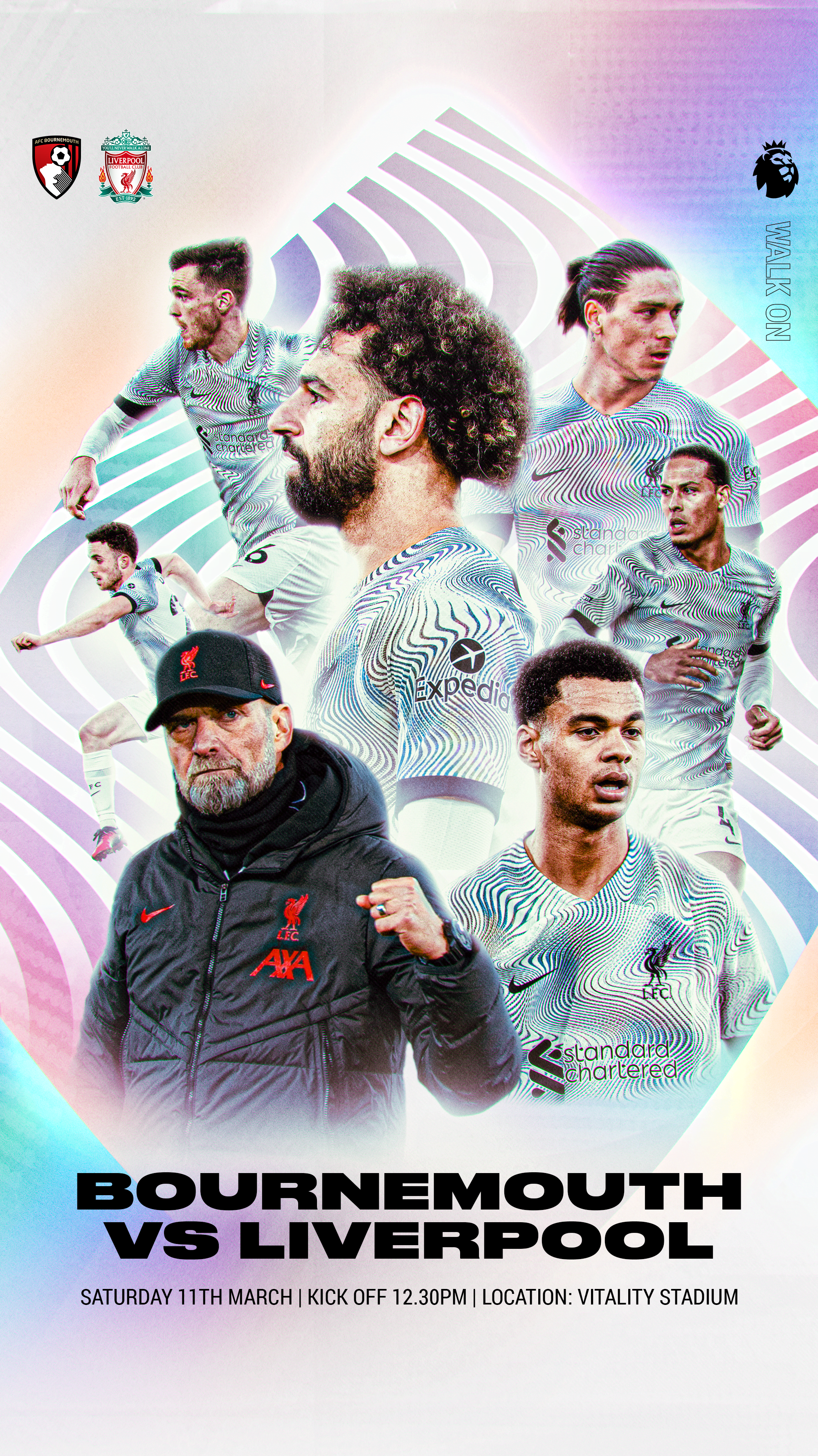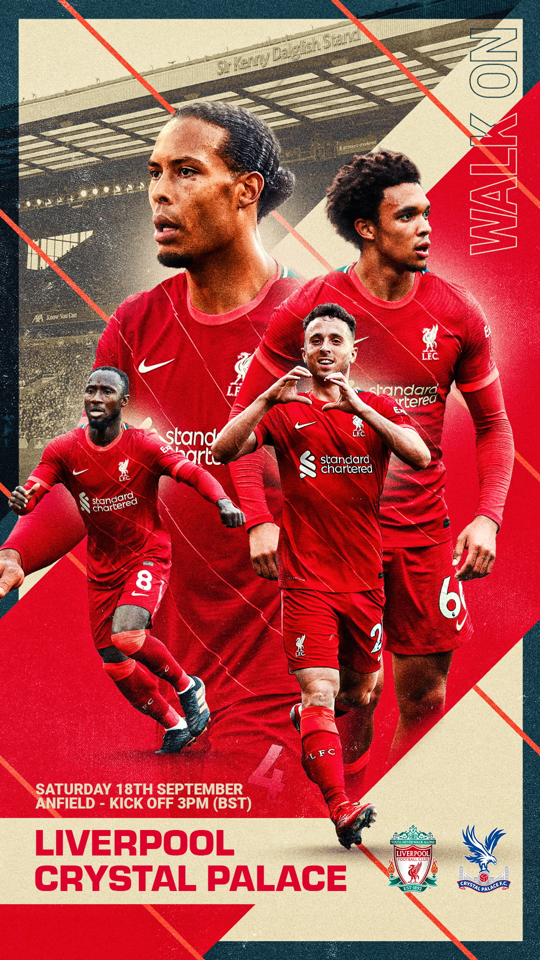 Liverpool FC required bold visuals to support matchday communication across their global social platforms. need for distinct imagery led to the Walk On campaign, an initiative where different designers are invited to create a unique visual for a specific fixture.